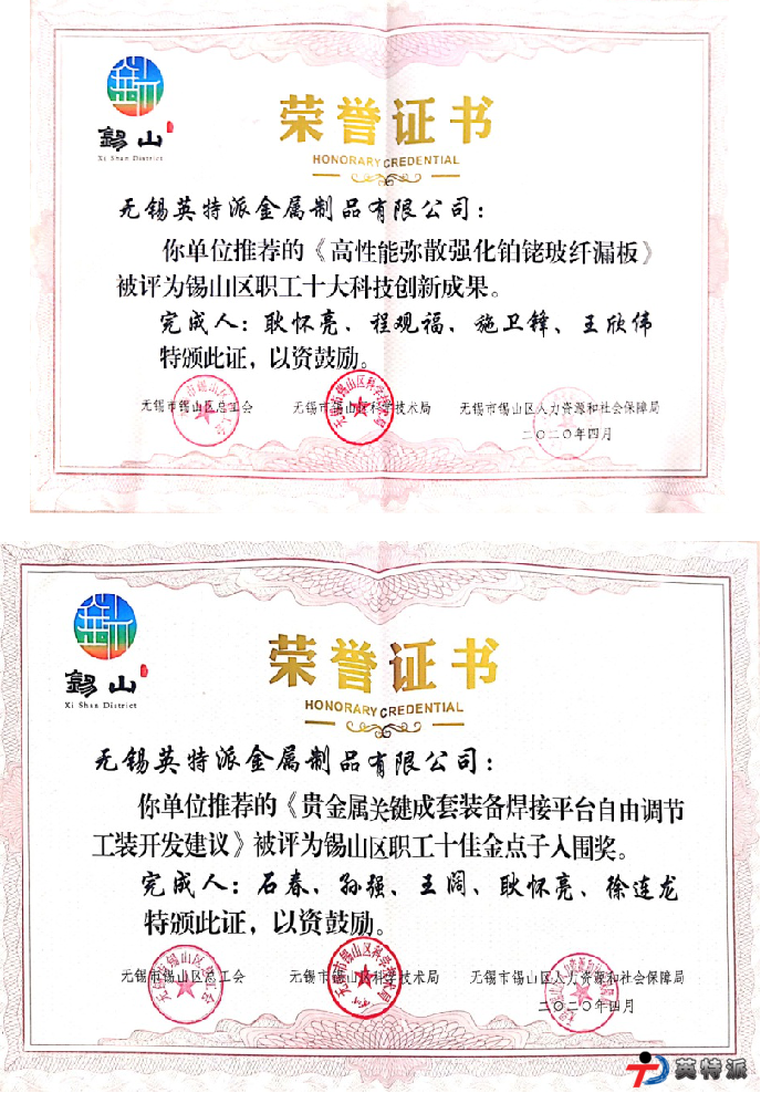 “高質(zhì)量高附加值玻璃基材生產(chǎn)用貴金屬關(guān)鍵成套裝備”榮獲江蘇省科學(xué)技術(shù)獎;