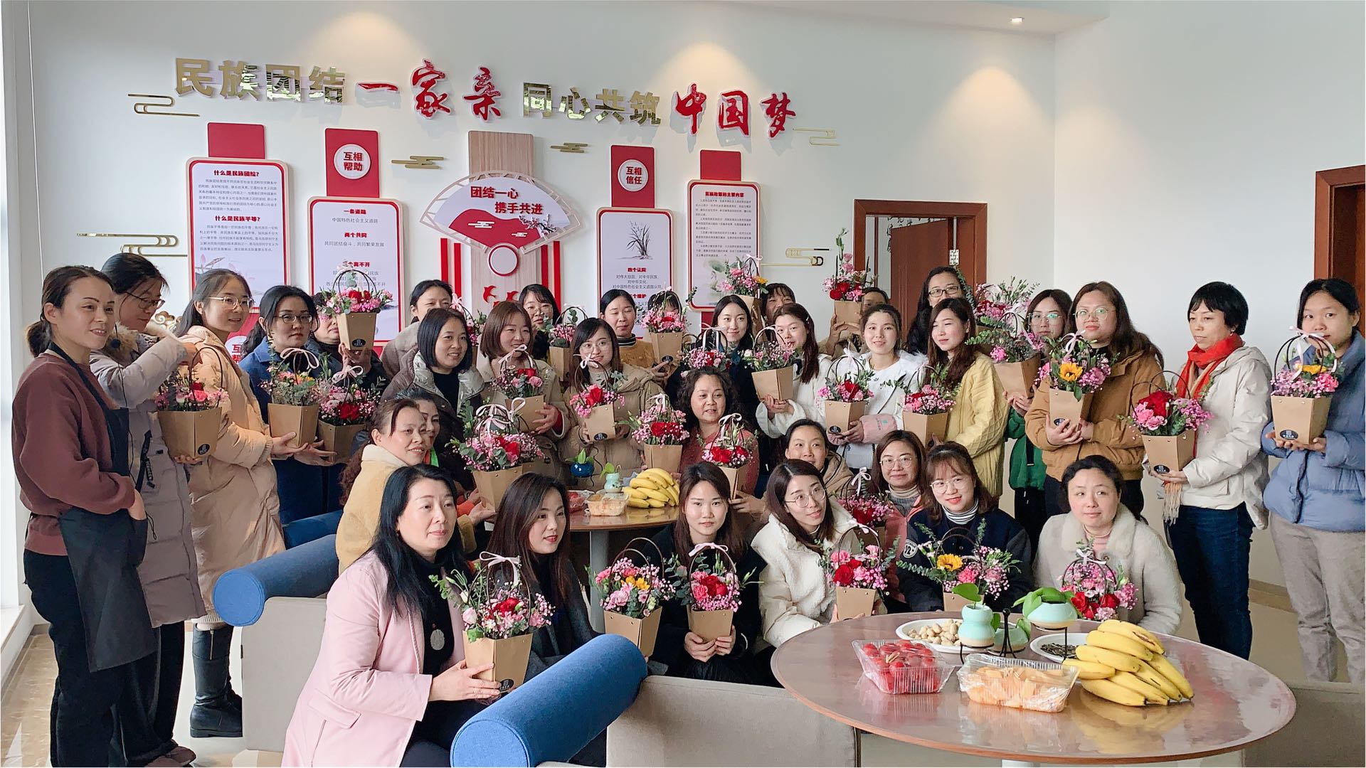 捧著自己完成的插花作品,大家紛紛與之合影,一時間,現(xiàn)場氣氛高漲,歡聲笑語。此次活動不僅豐富了公司女員工們的業(yè)余生活,還讓大家學會了如何通過插花來裝飾自己的生活環(huán)境,點綴生活中的美,提高了生活熱情,營造了輕松愉悅的工作生活氛圍。