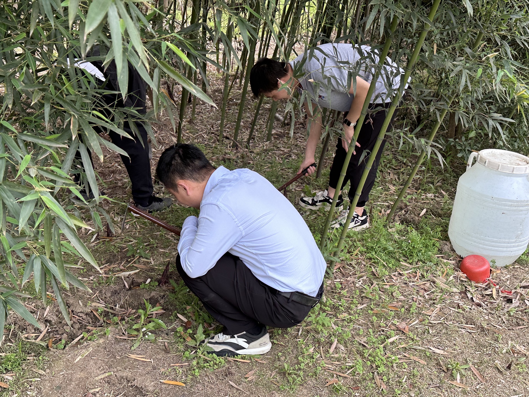 職工們穿越在郁郁蔥蔥的竹林中,踏著腳下松軟的泥土,尋找著那些隱藏在竹海間的寶藏。大家拿著工具全身心地投入挖筍活動,在勞作中享受挖筍的樂趣。每一次彎腰、挖掘都充滿了期待與驚喜,挖出的不只是那一顆顆鮮嫩飽滿的春筍,更是春天的活力與希望。后續食堂會將職工們挖出的青筍制作特色美食,品春之味,感春之美。